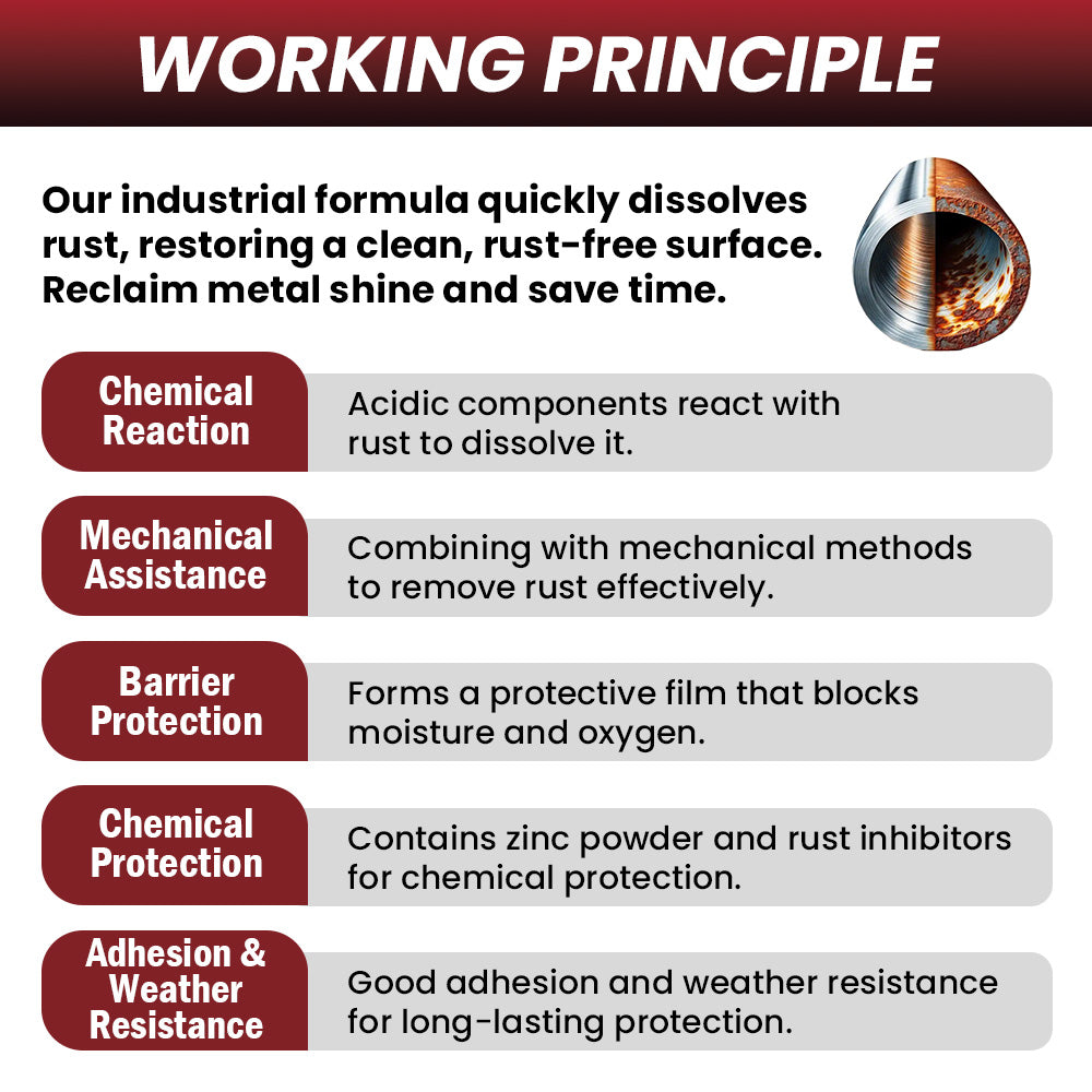 Our Rust Remover belongs to Neutral pH removers that employ a combination of chemical and physical processes to effectively and safely remove grime, oxidation, and rust from metal surfaces. Here's a breakdown:
